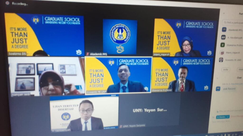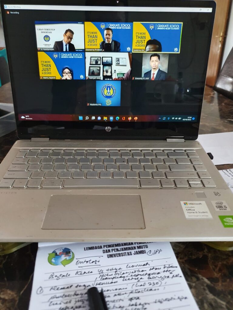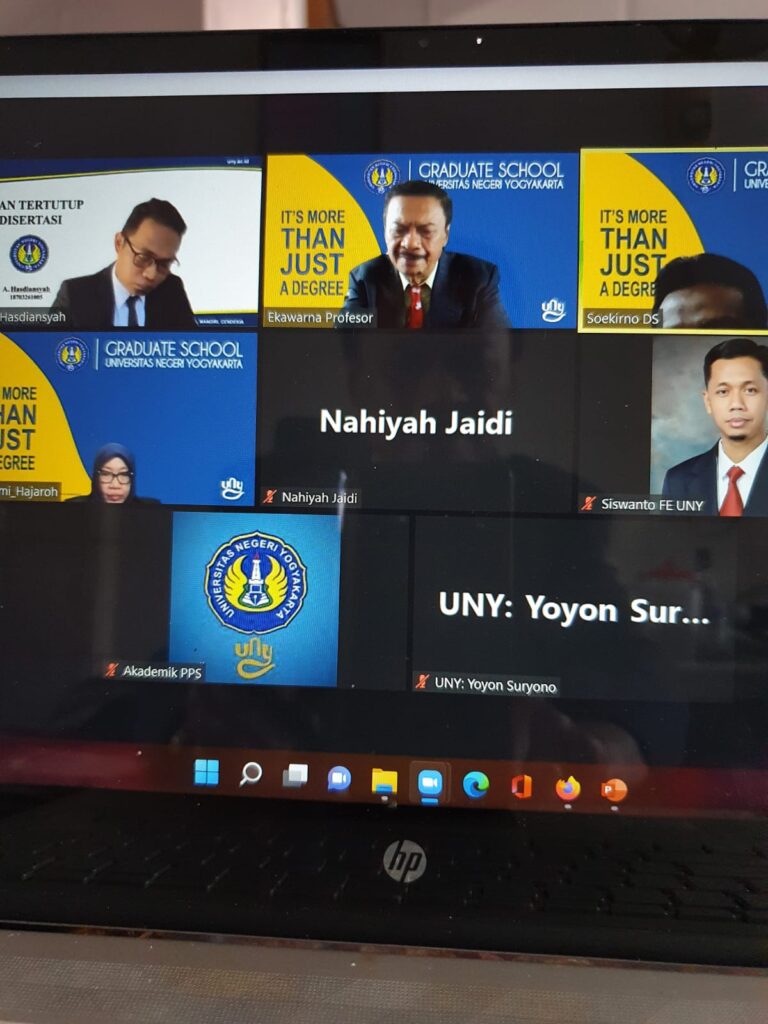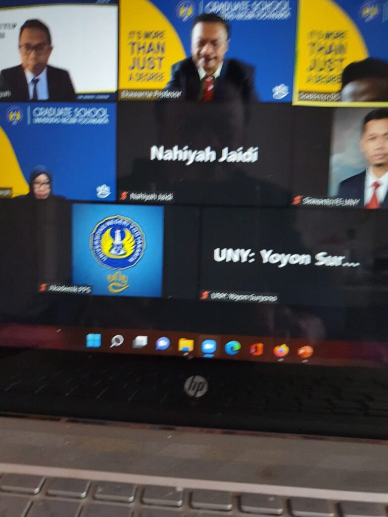 Prof. Ekawarna selaku Guru Besar Program Studi Doktor Kependidikan Universitas Jambi pada Senin, 3 Oktober 2022 siang pukul 13.00 WIB menguji pada ujian tertutup Program Pascasarjana Universitas Negeri Yogyakarta. Ujian tertutup tersebut berlangsung melalui zoom conference. Promovendus a.n. A. Hasdianysah mendapat banyak sekali masukan baik berupa kritik maupun saran rekomendasi dari Prof. Ekawarna saat ujian berlangsung.