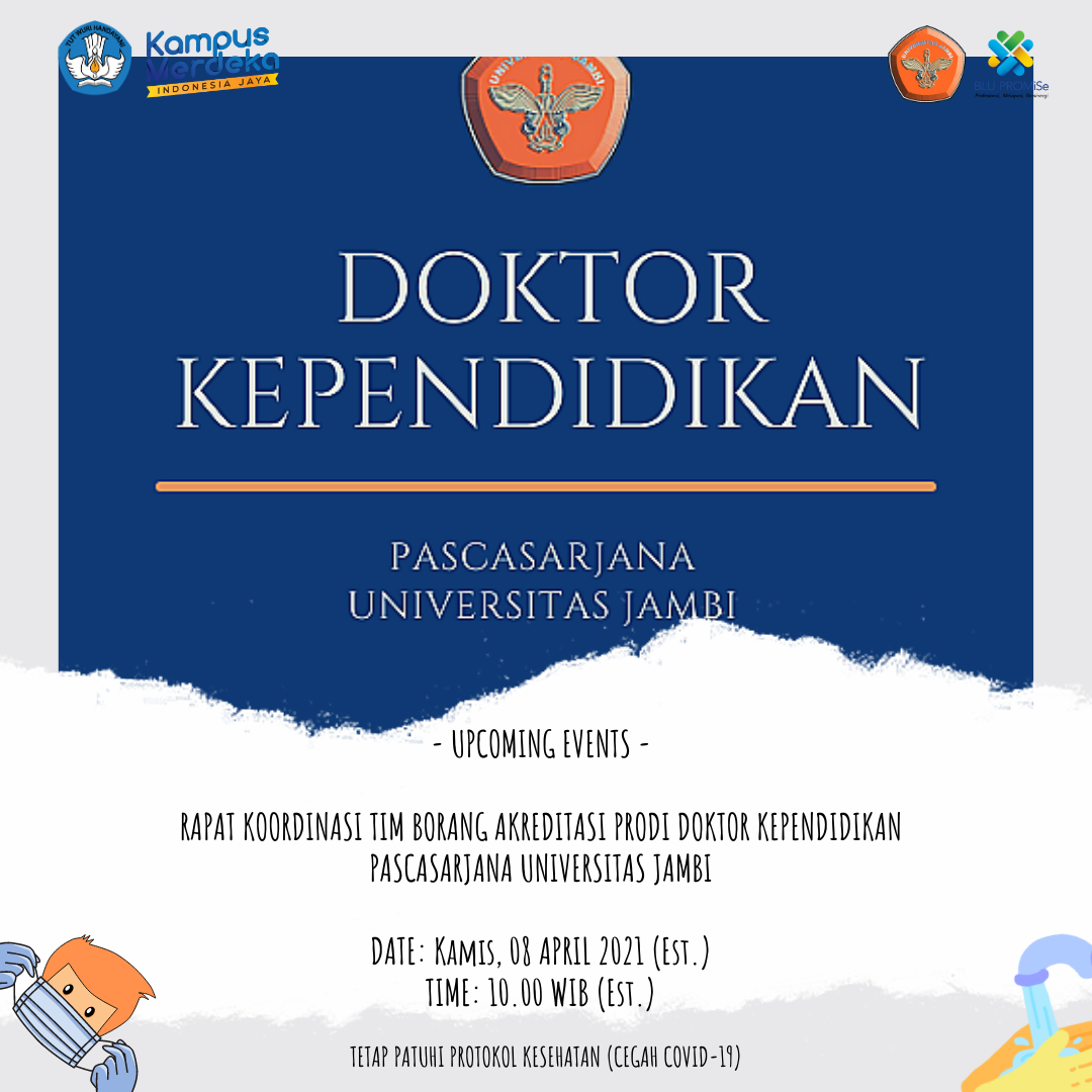 Warta Estiga Assalamualaikum wr.wb. Salam sejaahtera untuk Bapak/Ibu calon mahasiswa Program Doktor Kependidikan Pascasarjana Universitas Jambi. Sebelumnya, tak bosan Tim Prodi menghaturkan terima kasih atas… Read More »Info Persiapan Tes Seleksi PMB T.A. 2021/2022